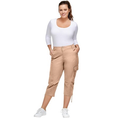 Product Name: Rekucci Women’s Pull-On Comfort Capri Pants with Back Lacing Detail & Pockets – Mid-Rise Stretch Capris - Khaki, 14