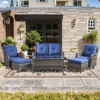 Gymojoy 5 Piece Outdoor Wicker Loveseat Sofa with Patio Chairs with Coffee Table and Side Table