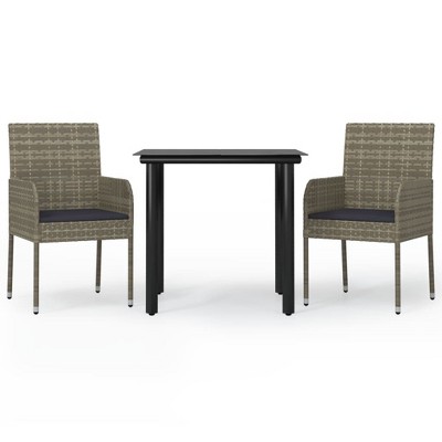 vidaXL Outdoor Patio Dining Set - Black Poly Rattan with Cushions, Modern Design - Tempered Glass Tabletop - Weather-Resistant PE Rattan