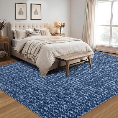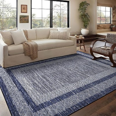 Washable Area Rug - Soft, Low-Pile, Non-Shedding Vintage Distressed Carpet for Indoor Spaces, Blue