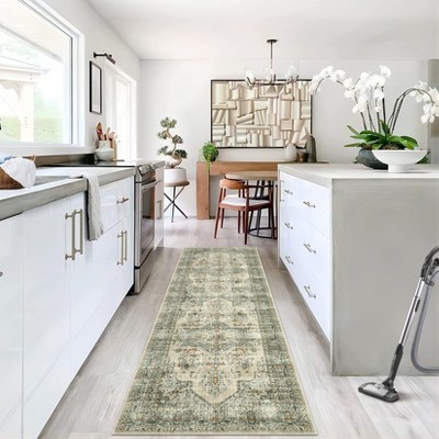5x7 Distressed Floral Area Rug, Non-Slip Low Pile Carpet for Living Room, Nursery, Bedroom, Dining Room, Light Green