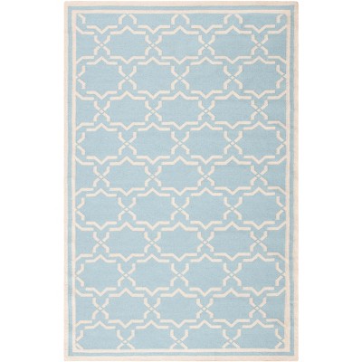 Boasting a striking pattern, this piece showcases an elegant blue and ivory color scheme that exudes a serene yet sophisticated charm. The timeless design, reminiscent of Moroccan trellis motifs, brings a touch of classic elegance to your floors, blending harmoniously with both contemporary and traditional decors.