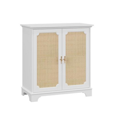 Lyngins Sideboard Buffet Cabinets with 4 Wavy Slatted Doors,Metal Handles,10.04 Inch Height Coffee Bar Cabinets,Credenzas for Kitchen,Entryway,White
