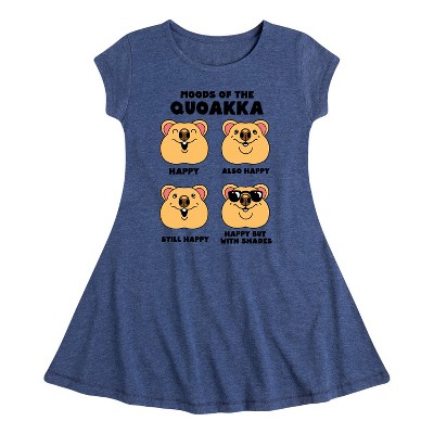 Instant Message Quokka Flower Fit & Flair Cap Sleeve Graphic Dress - Heather Navy - 3T