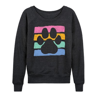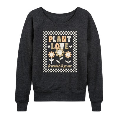 Women's Instant Message Negative Space Shamrock Lightweight French Terry Wide Neck Long Sleeve Graphic Shirt - Heather Charcoal - X-Large