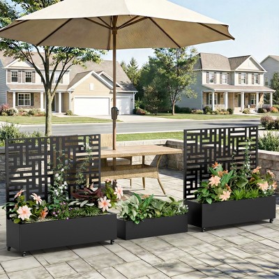 Wooakway Outdoor 4-Piece Planter Privacy Panel Set Weather-Resistant Galvanized Patio with Rolling Wheels for Decks Yards Climbing Plants
