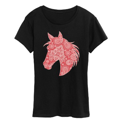 Women's Instant Message Paisley Horse Head Oversized Graphic T-Shirt - Black - X-Large