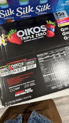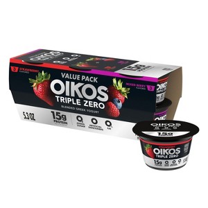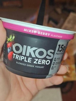 - STRONGER MAKES EVERYTHING BETTER: Six 5.3 oz cups of Oikos Triple Zero Strawberry and Mixed Berry Nonfat Greek Yogurt