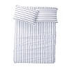 Classic and clean stripes in a standard ticking stripe pattern are a great addition to your bed. The pattern uses a white base with a wider spaced stripe featuring a three stripe pattern with two smaller stripes surrounding a thicker middle stripe. Simple stripes can help you pull together different looks, or they can be used to bring life to an all solid bed. This collection features deep pockets to fit thicker mattresses. Each item in the set is made from 100% microfiber polyester yarns in a percale weave and printed. This item is machine washable, but care should be taken to wash in appropriate size equipment to avoid damage. Includes: one fitted sheet 39x75 inches with 13 inch pocket to fit up to a 15 inch deep mattress, one flat sheet 69x96 inches, and one pillowcase 20x32 inches.