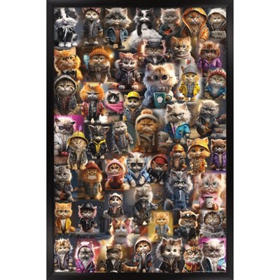 Trends International Famous Kitten Hang In There Poster Framed Wall Poster Prints