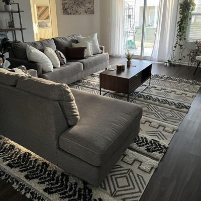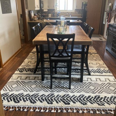 Great plush rug. Love the design and tassel details. It's plush and cozy. I love that it's a statement piece but also neutral colors to go with so much