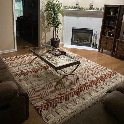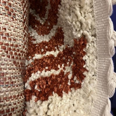 Beautiful rug! Super unique with the different textures. I get so many compliments on it. Obsessed with the rust orange.