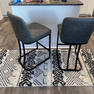 Really cute rug but it does not lay straight, which drives me crazy! It has a lot of stretch to it so the edges are always wavy and it bunches around any furniture sitting on top of it if you have carpet