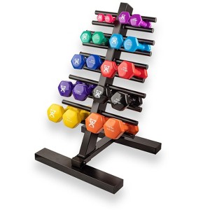 Product Name: CanDo vinyl coated dumbbell - 20-piece set with Floor Rack - 2 each 1, 2, 3, 4, 5, 6, 7, 8, 9, 10