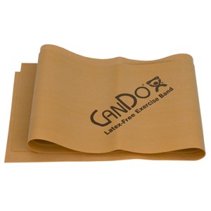 CanDo resistive band exerciser is packaged in a polybag. Simply remove exercise band from polybag and it is ready to use. CanDo high quality synthetic latex-free exercise band has been used for physical therapy and athletic training by clinics, fitness centers and individuals since 1987. It has become a well known staple of many physical therapy programs. The latex free formula has been specially created to mimic the stretch characteristics of latex band. CanDo exercise band is an economic solution for upper and lower body exercise. Lightweight, compact and portable. Durable. Effective when used alone, or with handles and anchors. Color-coded according to the exercise band's resistance. CanDo is licensed to use the Thera-Band color sequence so resistance level is easily identified. Available in 8 levels of resistance for progressive exercise. Levels range in order of resistance from least to greatest resistance: tan, yellow, red, green, blue, black, silver, gold. Uniform width - each band is 5" wide.