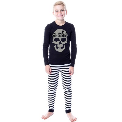 • WONDERFUL CLASSIC LOGO DESIGN - This awesome Matching Pajama Set features a classic Bat Logo design on a black long sleeve top, and the pants have a black and white stripe pattern. The pants have an elastic waistband, and the leg also has a stretch cuff for a snug fit at the ankles.