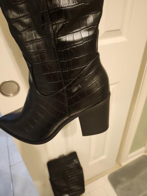 Do you prefer the city or the country? Embrace both sides with the Therese boot by Journee Collection. A stacked block heel and croc textured vegan leather detail this knee-high boot for a sassy look. This rodeo-inspired design features a wide-calf and a 4 mm � insole for supportive and comfortable wear. At Journee Collection our boot styles will have your outfit looking even better than before. They will give you that finishing touch that will have your outfit looking straight out of a magazine.
