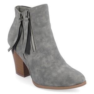 Show off chic style in double zipper ankle booties by Journee Collection. These booties feature premium faux leather uppers with stylish raised vamps and a double zipper design. Rounded toes and stacked chunky high-heels finish the look At Journee Collection our booties will give you that comfortable yet stylish look perfect for when you�re in the office all the way to a fun night out with the girls.