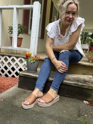 [This review was collected as part of a promotion.] So glad I ordered these in the tan color! They look so classy ! Very comfy too with the thicker sole! They are definitely on the roomy side with the top strap. If you have super narrow or thin feet they may be a little too roomy. I’m a size 10 and they fit great, maybe even with the slightest bit of extra length. They arrived just in time to take them on a Bahamas girls trip. I plan to wear them with sundresses and shirt dresses!
