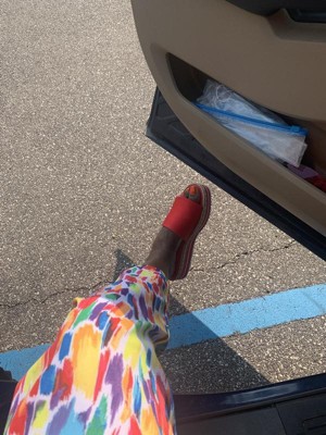 Show off your stems in this breezy slide. The Rosey sandal by Journee is topped with soft fabric uppers and a braided espadrille detail for a textured look. A striped sporty wedge heel lined with our signature 4 mfootbed grounds the look. This retro slide is sure to become a go-to for summer. Also available in wide width.