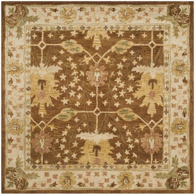 Embrace timeless elegance with our 6' X 6' Square area rug, exquisitely crafted in the rich hues of brown and beige. Hand-tufted in India with utmost precision, this wool pile masterpiece evokes a sense of tradition and luxury. The square shape complements a variety of spaces, offering both comfort and style. Its intricate floral pattern, bordered by a delicate cream outline, adds a touch of nature-inspired sophistication. Ideal for those who value artisanal skill and a classic aesthetic, this rug promises to transform your living space into an oasis of serene beauty.