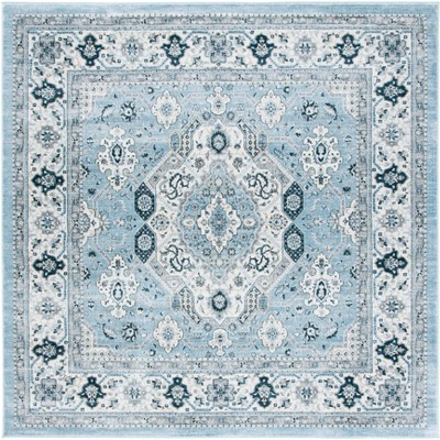 Discover the perfect addition to your living space with this stunning 8-foot square area rug. Crafted in Ukraine, this rug brings a contemporary touch with its geometric pattern and appealing blue and creme color combo. Made from polypropylene and power loomed for a sleek finish, the rug offers both durability and style. Its 1/4 inch height makes it an excellent fit for any room, providing comfort and elegance without overwhelming the space. Enhance your home decor and enjoy the fusion of modern design and functional artistry.