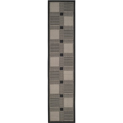 Courtyard CY1906 UV & Stain Resistant Non-Shedding Power Loomed Indoor/Outdoor Runner Rug - Black/Sand - 2'3"x14' - Safavieh