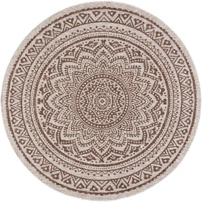 Courtyard CY6009 Power Loomed Indoor and Outdoor Area Rug - Brown/Aqua - 4' Round - Safavieh