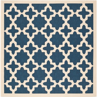 Courtyard CY6923 Power Loomed Indoor and Outdoor Area Rug - Navy/Beige - 5'3"x5'3" - Safavieh