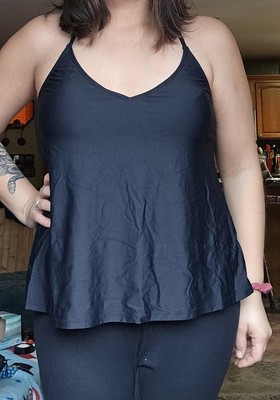 This tankini is very comfortable. The fabric is a good quality. For me, it lost a star because it needs more breast support than what the thin straps and crossed back provide. When you swim, the top can ride up so I remedied that by inserting elastic in the hem.