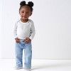These classic straight leg infant and toddler jeans are designed to keep up with the many adventures of your little one. Featuring a slightly stretchy denim material to allow freedom of movement, the pull-up style is secured with a button at the waistband. Ideal for almost any occasion, the dark wash matches a wide variety of tops, making it easy to create a timeless look. Our essentials have been independently certified with STANDARD 100 by OEKO-TEX® so that you don’t have to worry about harmful substances in your baby’s wardrobe. This pack includes one pair of jeans.