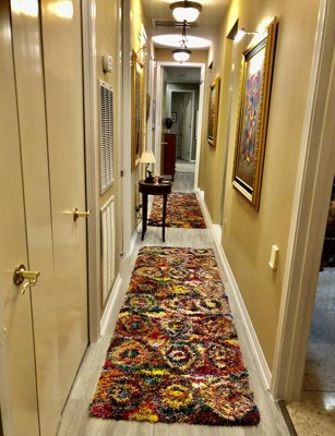 I bought 2 of the 10’ runners of the abstract circles rug, for my 26’ hallway because it is so colorful, and brings out the colors of my Russian artwork.