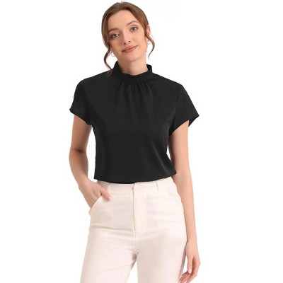 INSPIRE CHIC Women's Mock Neck Pleated Elegant Office Solid Cap Sleeve Blouse