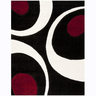 Elevate your living space with the contemporary elegance of our 9 X 12 large rectangle area rug in a sophisticated black and ivory color palette. This striking piece boasts a bold shag style that exudes luxury and comfort, inviting you to sink your feet into its plush 1 1/8" pile height for the ultimate relaxation experience.