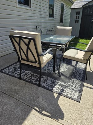 • EASY CARE: For an outdoor rug, remove debris frequently with the use of a broom or blower. To wash, spray the surface with a soap and water mixture, then rinse thoroughly with a garden hose and hang over a railing to dry thoroughly. Rotate for even wear.