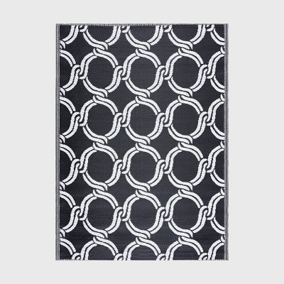 Playa Rug 5'x7' Paris Recycled Plastic Woven Indoor Outdoor Folded Floor Mat Black and White: UV, Fade & Water-Resistant, Hose Clean