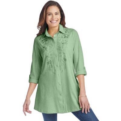 Woman Within Button-Front Embroidered Tunic