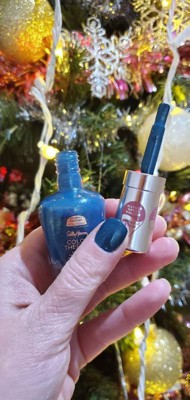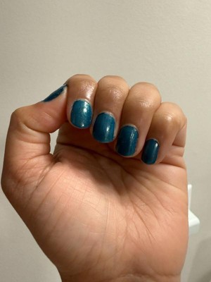 [This review was collected as part of a promotion.] This teal nail polish is perfect for an everyday nail look! It was easy to apply and did not leave streaks on my nails. It dried very fast and applied thickly. The photo in the review was 1 coat of application. It appears a dark teal with a shimmer!