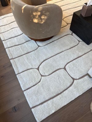 [This review was collected as part of a promotion.] This rug looks great. It's quite thick. Note, it won't be a flat rag. It's kind of bumpy on the lines but I think this looks good and adds texture.
