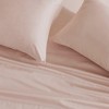 I really am enjoying these! They are thicker and sturdier than previous sheets I have used, and I think that’ll be great for longevity. I’ve had them for a few weeks now and have gone through weekly washes and holding up great. The fitted sheet is a bit tight so a little hard to get the corners on right but, other than that, they’re awesome! They feel satiny and have a pretty sheen — love the rose color too. It’s a deeper shade and looks lovely. They also feel cooling.
