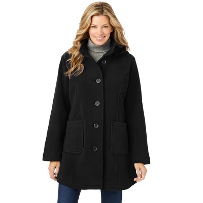 Woman Within Fleece Swing Funnel-Neck Coat - L, Black