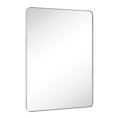 This contemporary and farmhouse-style rectangular mirror features rounded corners and a sleek stainless steel frame, making it a versatile addition to any space. The durable metal construction ensures safety and longevity, especially in humid bathroom environments. Its minimalist design effortlessly complements modern, rustic, or transitional decor, while the generous size enhances natural light and creates the illusion of space. Perfect as a vanity mirror, living room accent, or hallway statement piece, this mirror combines timeless elegance with everyday functionality.