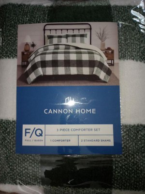 Experience ultimate comfort with our luxurious comforter, featuring a large-scale check pattern on a delightfully soft, plush fabric. Crafted from 230 GSM, 100% polyester, the plush face cloth provides an exceptionally cozy feel. The reverse side of the comforter and pillow sham boasts an ecru solid color micro-mink plush fabric, also made of 100% polyester, ensuring both comfort and durability, even in high-traffic areas. Filled with 100% polyester down alternative fiber fill, this comforter offers a perfect blend of softness and warmth. The Cannon brand, established in 1887, is renowned for its high-quality, easy-care, and stylish home products, making it a beloved American staple. With its enduring heritage, Cannon continues to deliver consistent quality at an affordable price. Additionally, this comforter is OEKO-Tex Standard 100 certified, guaranteeing it has been made responsibly and safely. Face is 100% printed cozy polyester weighing 230 grams per square meter with a reverse of 100% micromink plush polyester with a weight of 180 gsm with 100% polyester fill. This item is machine washable, but care should be taken to wash in appropriate size equipment to preserve the items quality. Includes: one full/queen comforter 90x90 inches and two standard shams 20x26 inches.