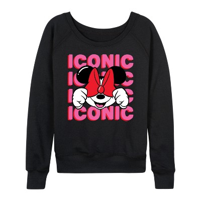 Women's - Disney - Minnie Mouse Brain Has Too Many Tabs Open Lightweight French Terry Wide Neck Long Sleeve Graphic Shirt