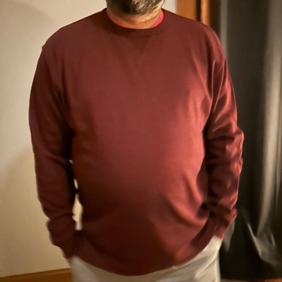 [This review was collected as part of a promotion.] My husband loves this crew neck textured long sleeved shirt. Such a great color and the material was not too heavy. Perfect for the start of fall. He is 5ft 8in and is typically a medium. This was a medium and fits true to size. Hits him at hip length. It’s stylish with ribbed cuffs and somewhat of a snug fit that really accentuates his build. This was the red color which is more like a deep wine. I received an incentive to write this review.
