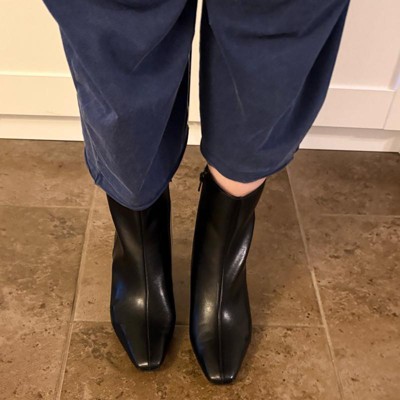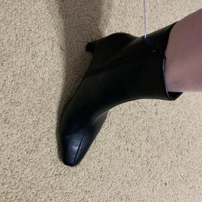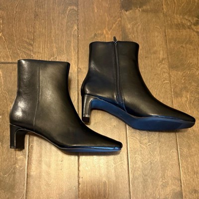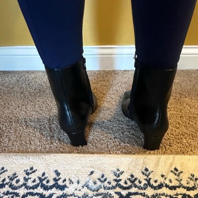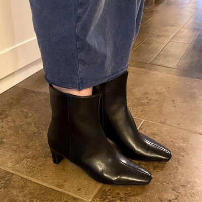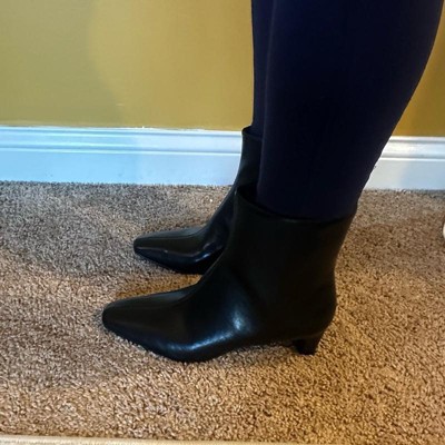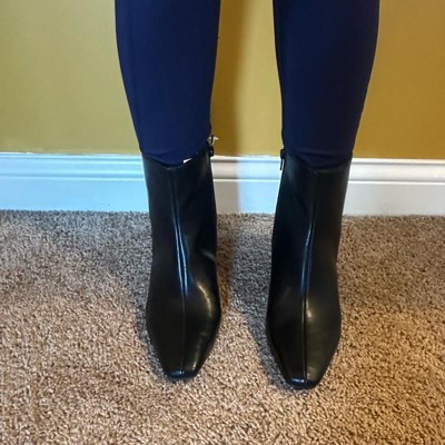 Take on any outing in eye-catching style with these Tigris Low-Shaft Heeled Boots from A New Day™. These closed D-toe boots have a classic faux-leather upper in a solid shade for an elegant look. Featuring memory foam insoles for all-day comfortable wear, these medium-width ankle boots have a two-inch block heel for a statement lift to your height and a side zipper closure for easy on and off.