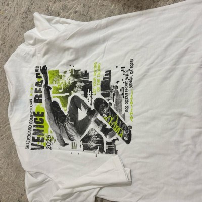 [This review was collected as part of a promotion.] Got this boys long sleeve graphic T shirt from cat & jack for my son.He is wearing size xl and it fits him good.He is 11 years old and wear xl or large husky size.This shirt is white in color.It have Venice beach text with palm tree graphics on the front and huge fun graphic on the back.He can wear this shirt with any color jeans or shorts.He said this shirt is cool,soft and comfy.