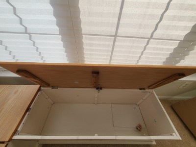 submitted byLinon Home Decor - 5 years agoBrand expertA: The Tobin Backless Corner Breakfast Nook sits flush with the ground. If you cut a hole in between the floor and the bottom of the inside of the storage space around the trim for air to flow it could compromise the structure of the piece.