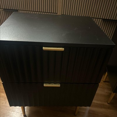 1 Pack Modern Nightstand with USB Charging Station, Gold & Wood Fluted Bedside Night Stand with 2 Drawers, USB Ports & Outlets