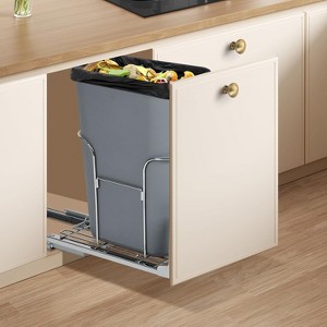 - Eco-Friendly Waste Management: cabinet trash can pull out kit Maximize your kitchen space ,keeps the garbage out of sight and says goodbye to a messy kitchen and dirty sink,avoid your pets to knock it over and creating a mess. Promote sustainability with our double trash bins, designed for efficient recycling and waste separation.